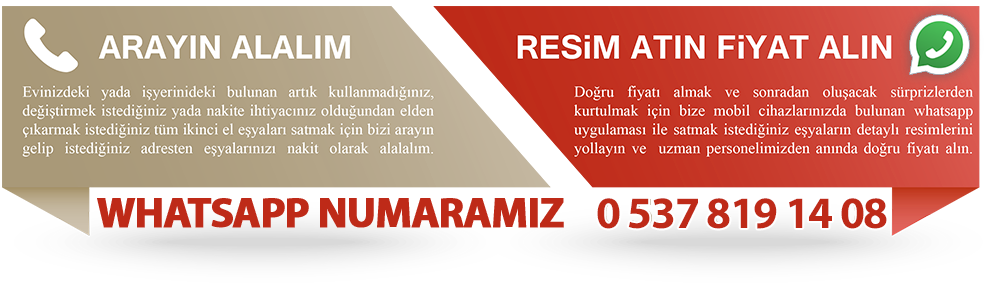 Firmamızın siz değerli müşterilerine sunduğu bir diğer hizmet ise, telefon ile görüşmek istemeyen ve konuşarak işlemleri uzatmayı sevmeyenler içindir. Bu işlem ise şudur; zamana ayak uyduran ve teknolojiyi takip eden firmamız artık akıllı telefonlarda bulunan Whatsapp uygulaması ile satmak istediğiniz tüm ikinci el eşyalarınızı çok daha hızlı şekilde alıyor. Yapmanız gereken ise çok kolay 0 537 819 14 08 mobil whatsapp için kullanılan hattımızdan satmayı düşündüğünüz eşyaların resimlerini yollamanız ve hemen arkasından telefonun ucundaki tecrübeli uzman personelimiz tarafından size eşyalarınızın satın alınabileceği rakam verilir. Bu süreçte kimse ile konuşmaya ihtiyaç duyulma ve eğer verilen fiyatta anlaşmaya varılır ise adresinizi iletirsiniz ve nakliye aracımız ile adresinize gelip sorunsuz bir ticaret yapmış olursunuz.